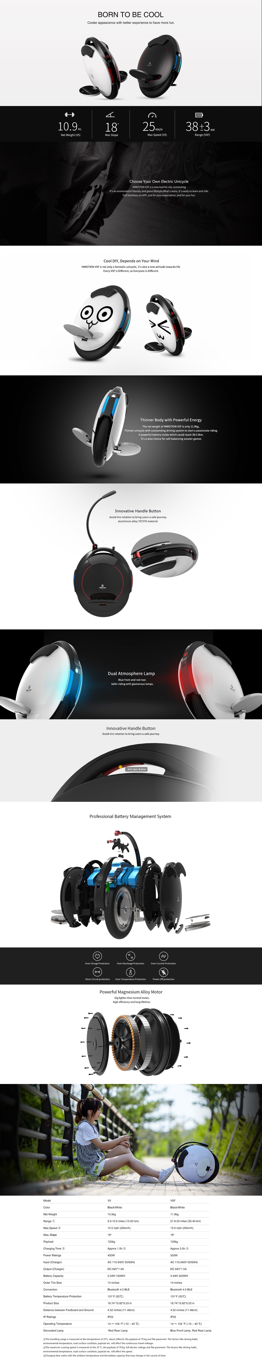 Inmotion V5F enhjulingen tillverkades som en förbättrad version av Inmotion V5 med ökad batterikapacitet och ersatte den senare mycket snabbt eftersom det var Inmotion V5F där batteriet klarade de flesta vardagliga uppgifter.